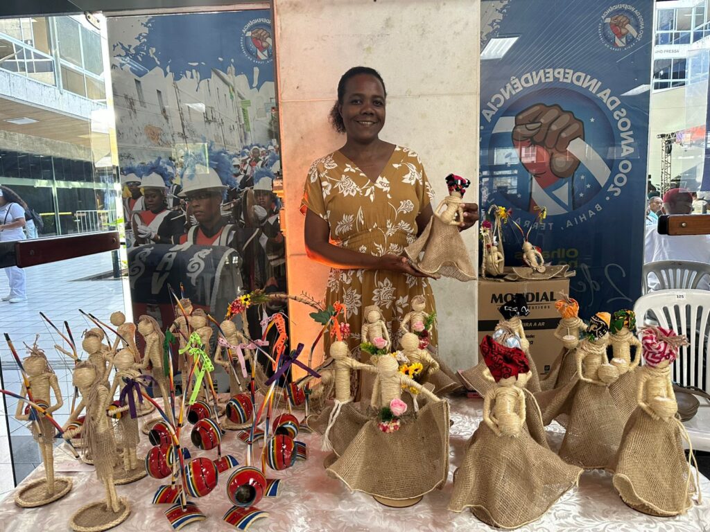 “Trabalho com bonecas negras, orixás e santos sacros. Mas o meu principal objetivo é incluir as pessoas através da arte, tenho bonecas que representam condições como vitiligo e deficiência. As pessoas quando veem, se emocionam, e isso pra mim é gratificante. No Festival de Capoeira já é meu segundo ano, foi tão bom que eu retornei e minhas expectativas são as melhores”.