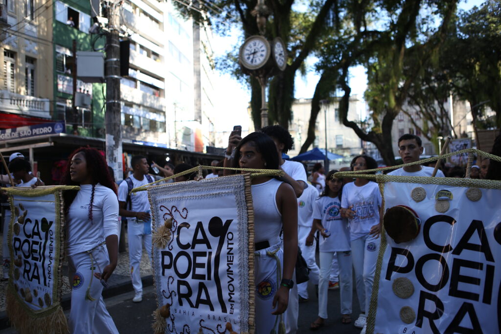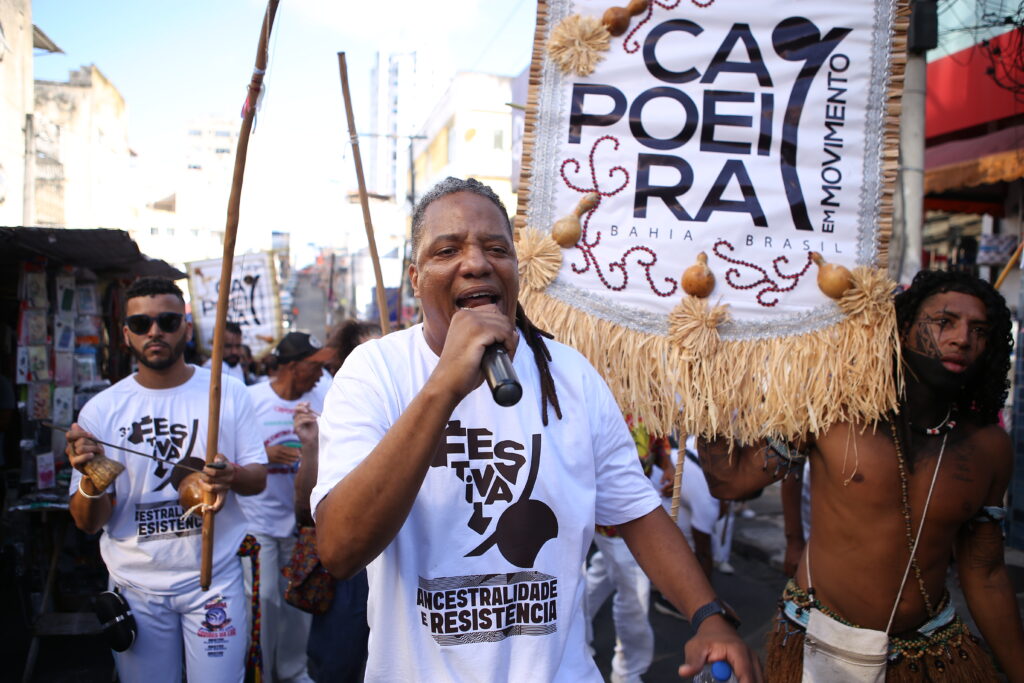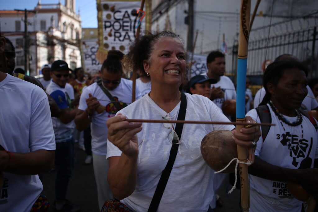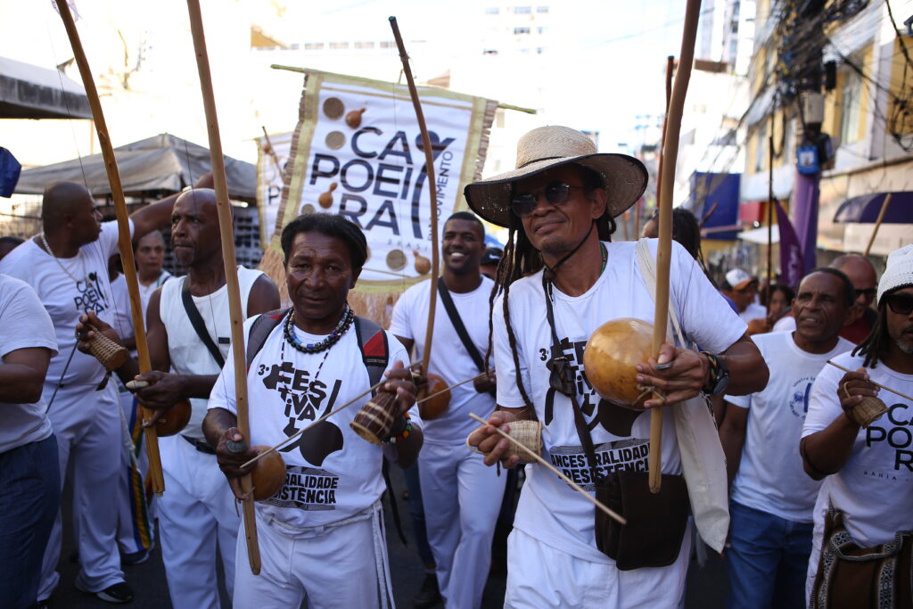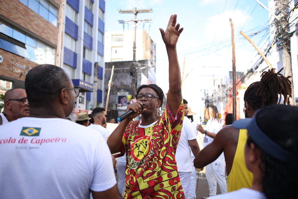 Homens e mulheres capoeiristas foram às ruas nesta sexta-feira (14) pressionar as autoridades a aderirem a inclusão da capoeira nas escolas públicas da rede municipal e a abrangência do “Qualifica Capoeira”, programa de capacitação e certificação gratuita dos profissionais. Intitulada ‘Berimbalada’, o protesto ecoou pelas ruas ao ritmo do grupo Swing do Pelô e ao som dos berimbaus durante uma caminhada que iniciou na Biblioteca Central, nos Barris, e culminou na Praça Thomé de Souza, no Centro Histórico de Salvador, berço da histórico-cultural e importante polo da capoeira. A iniciativa integra as ações do 3° Festival de Capoeira: Ancestralidade e Resistência.