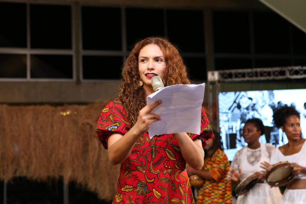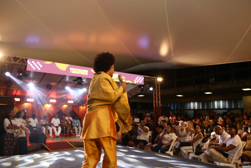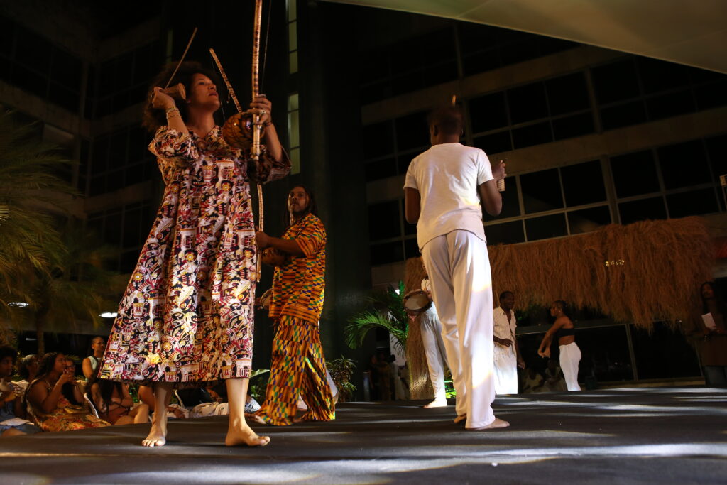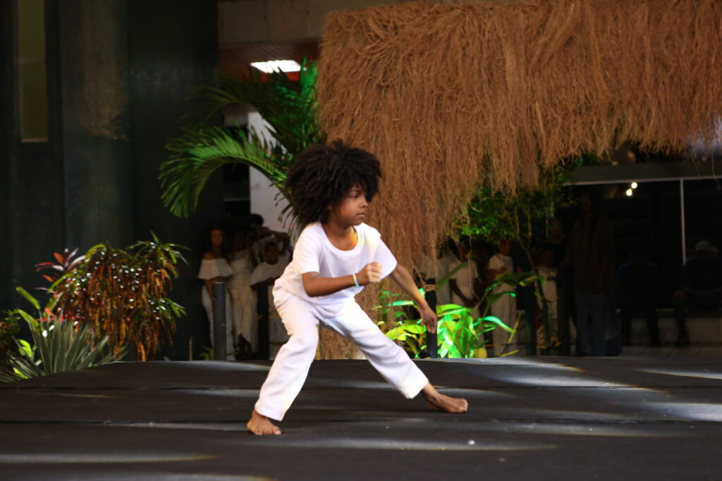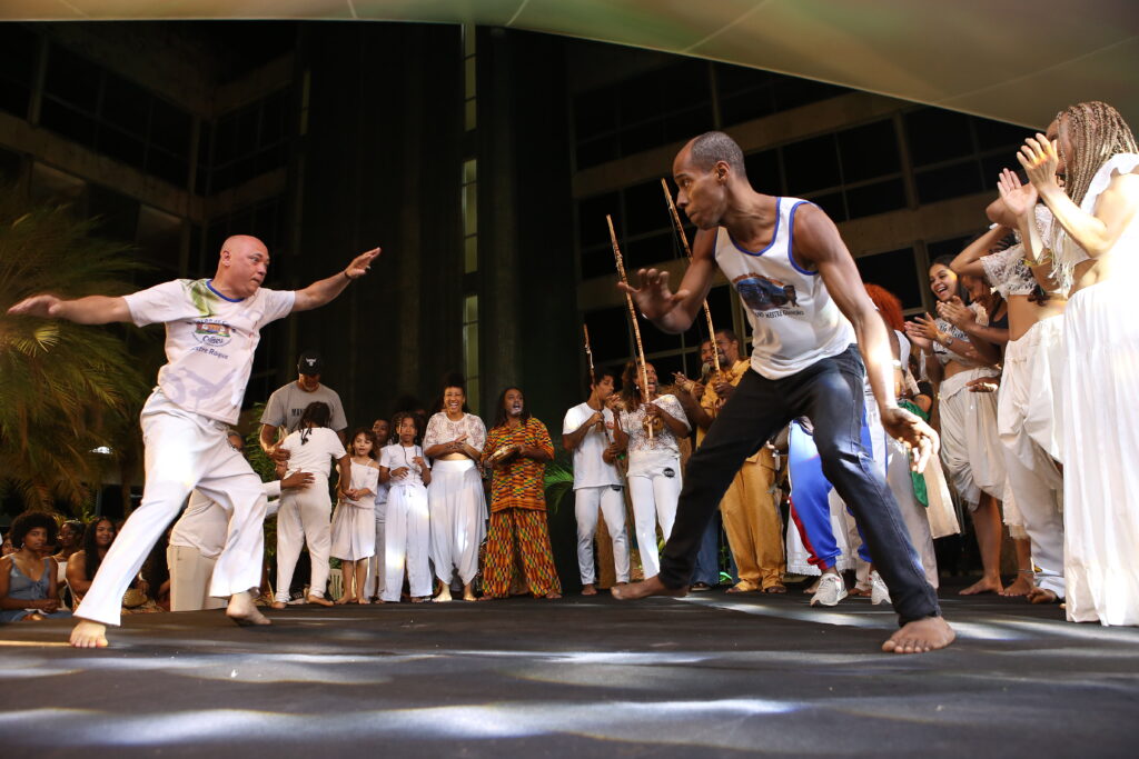 A reverência e reconhecimento à vasta contribuição dos detentores da tradição foi prestada com uma roda de capoeira, considerada patrimônio cultural imaterial do Brasil e da humanidade pela UNESCO. Capoeiristas de diferentes graduações e idades apresentaram jogo individual e coletivo, com destaque para as crianças, que carregam em suas corporeidades a herança africana, apontando caminhos para um futuro ancestral.