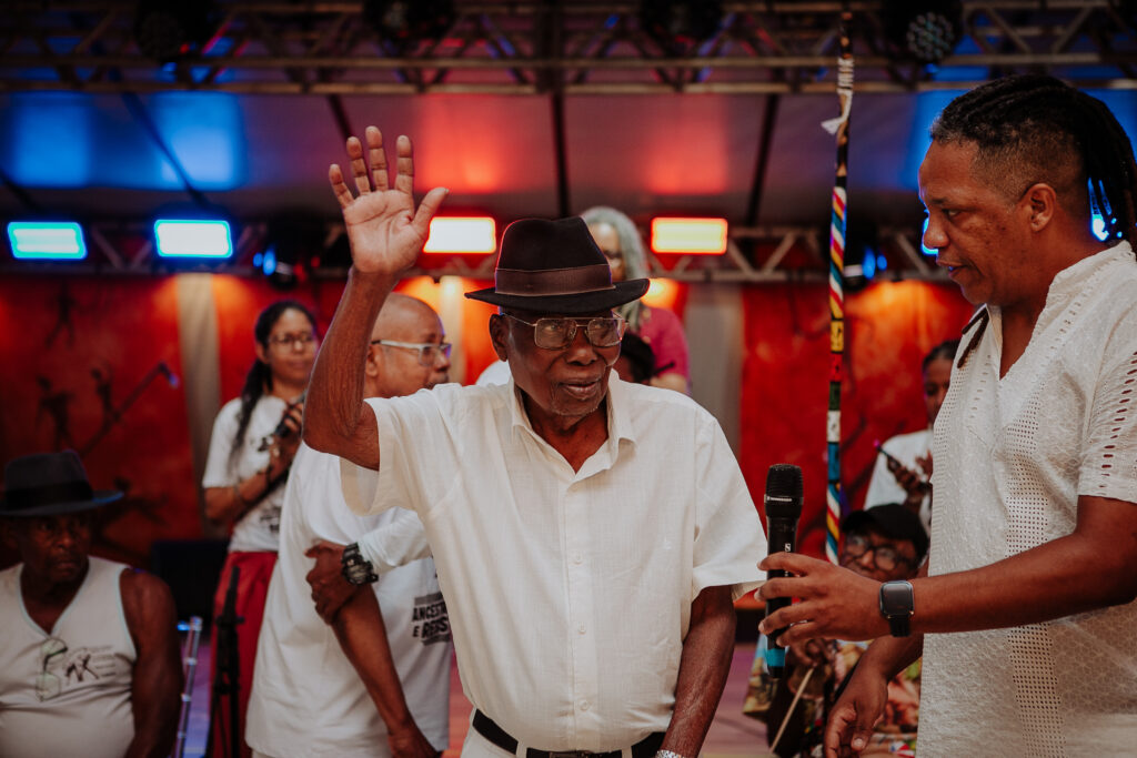 Com Griôs entre 80 e 98 anos, que durante suas trajetórias enfrentaram repressão, racismo e invisibilização do estado e da sociedade, a Roda do Século colocou esses corpos – que antes guerreavam por sobrevivência, em movimento de celebração. Entre eles o Mestre Carcará, de Santo Amaro, que aos 83 anos encantou com a sua oralidade.