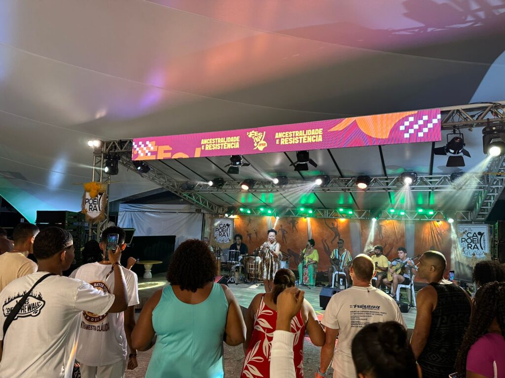Maísa Santana, 26, do Grupo Palmares, participou do Festival pela primeira vez e se emocionou. “Sensação indescritível de estar aqui e ter essa conexão com a nossa ancestralidade”.